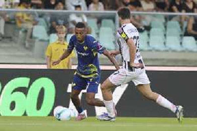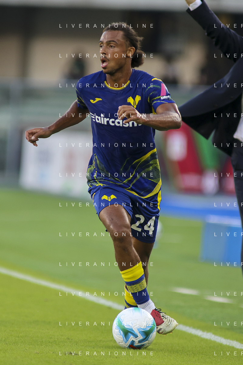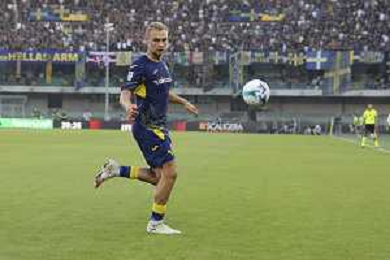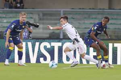 Antoine Joseph Bernede of Hellas Verona FC play the ball during Hellas Verona FC vs Juventus FC, 4° Serie A Enilive 2025-26 game at Marcantonio Bentegodi stadium in Verona (VR), Italy, on September 20, 2025. (Photo by Davide Casentini)- AGENZIA ALDO LIVERANI