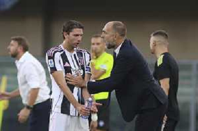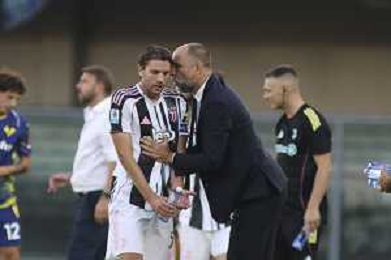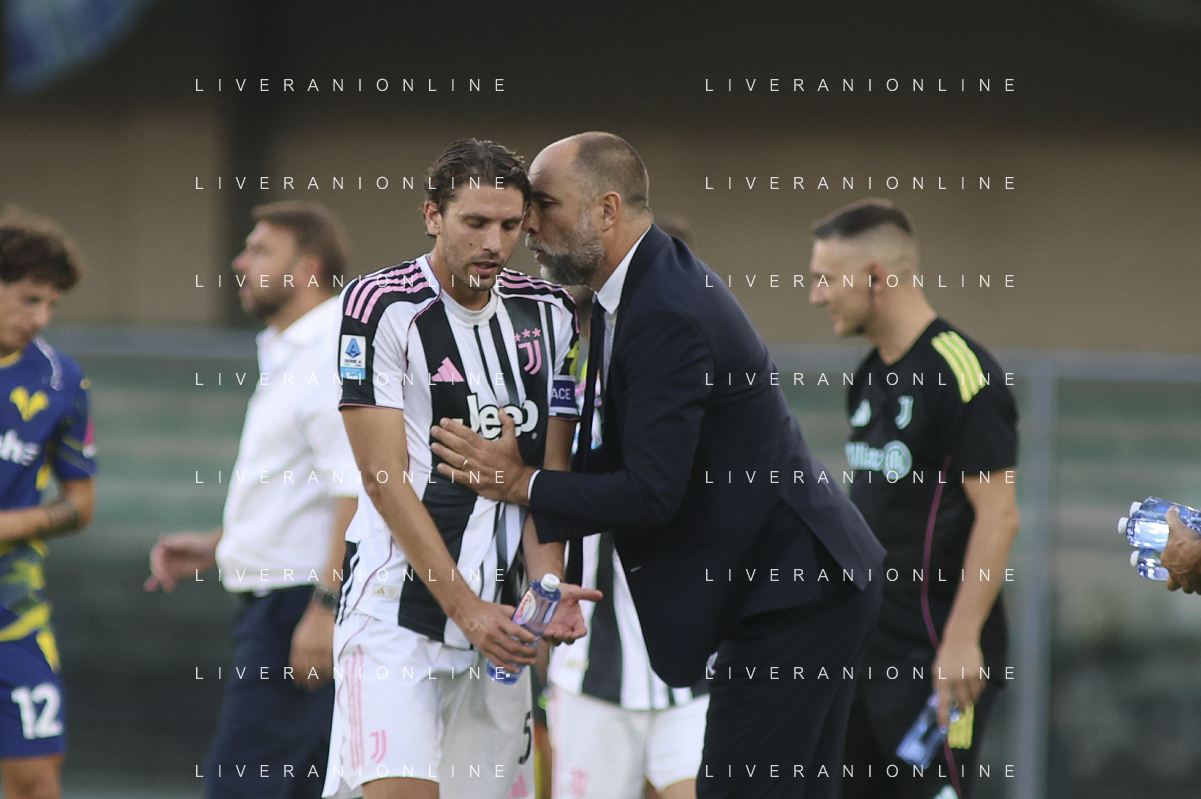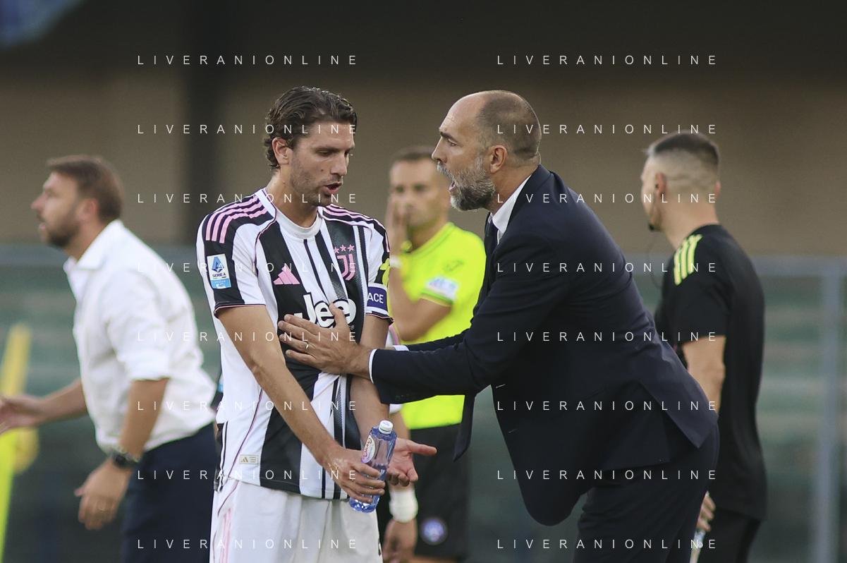 Jugor Tudor Head Coach of Juventus FC speaks to Manuel Locatelli of Juventus FC during Hellas Verona FC vs Juventus FC, 4° Serie A Enilive 2025-26 game at Marcantonio Bentegodi stadium in Verona (VR), Italy, on September 20, 2025. (Photo by Davide Casentini)- AGENZIA ALDO LIVERANI