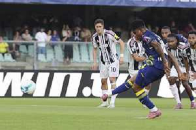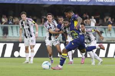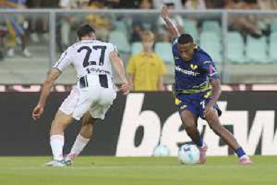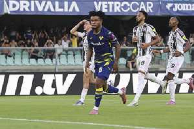 Gift Orban of Hellas Verona FC scores a goalduring Hellas Verona FC vs Juventus FC, 4° Serie A Enilive 2025-26 game at Marcantonio Bentegodi stadium in Verona (VR), Italy, on September 20, 2025. (Photo by Davide Casentini)- AGENZIA ALDO LIVERANI