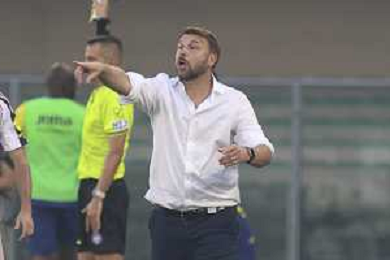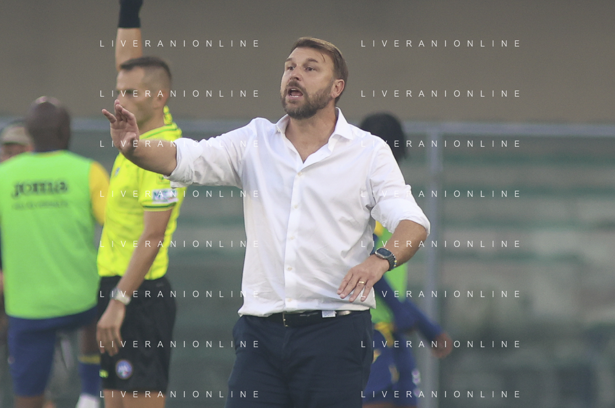 Paolo Zanetti Head Coach of Hellas Verona FC gestures during Hellas Verona FC vs Juventus FC, 4° Serie A Enilive 2025-26 game at Marcantonio Bentegodi stadium in Verona (VR), Italy, on September 20, 2025. (Photo by Davide Casentini)- AGENZIA ALDO LIVERANI