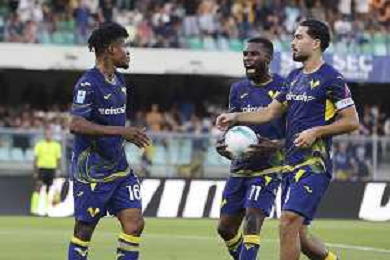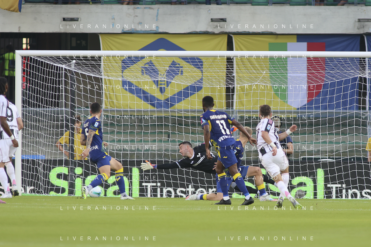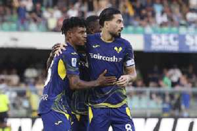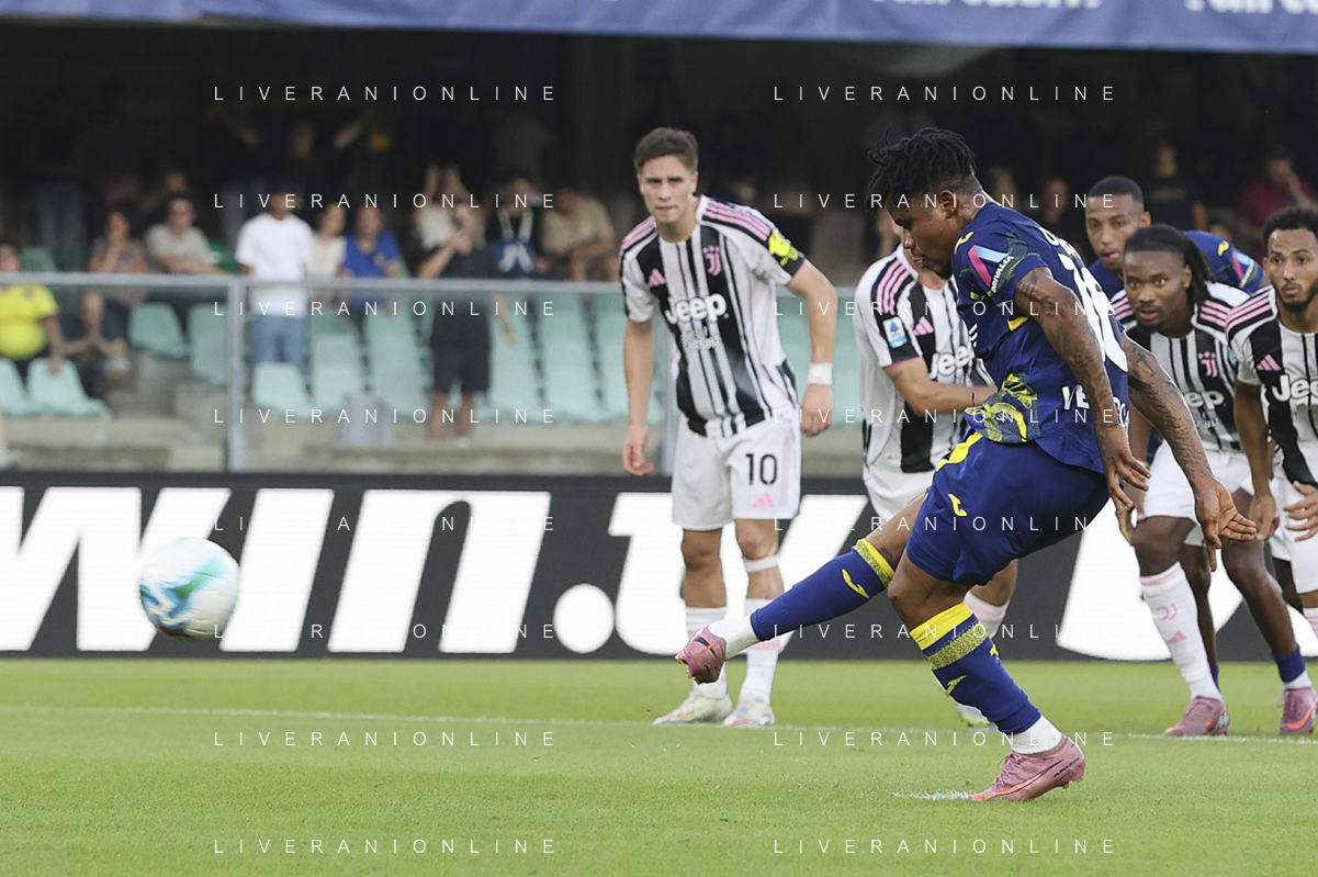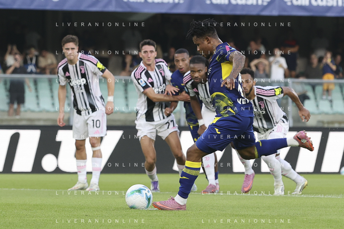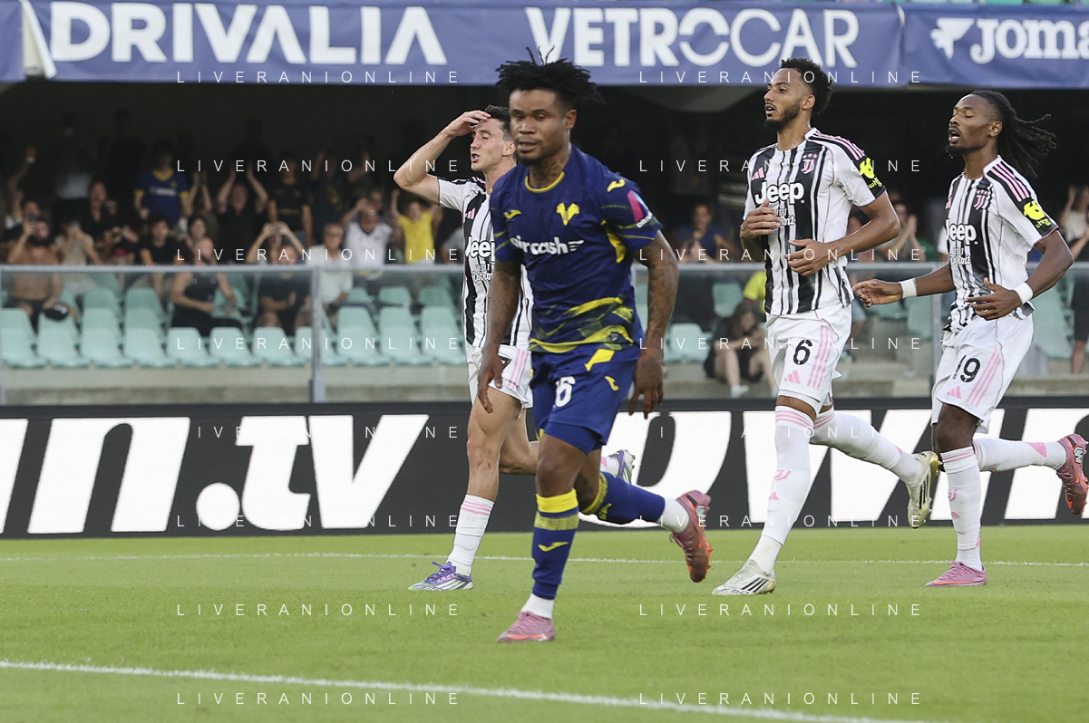 Gift Orban of Hellas Verona FC scores a goal during Hellas Verona FC vs Juventus FC, 4° Serie A Enilive 2025-26 game at Marcantonio Bentegodi stadium in Verona (VR), Italy, on September 20, 2025. (Photo by Davide Casentini)- AGENZIA ALDO LIVERANI