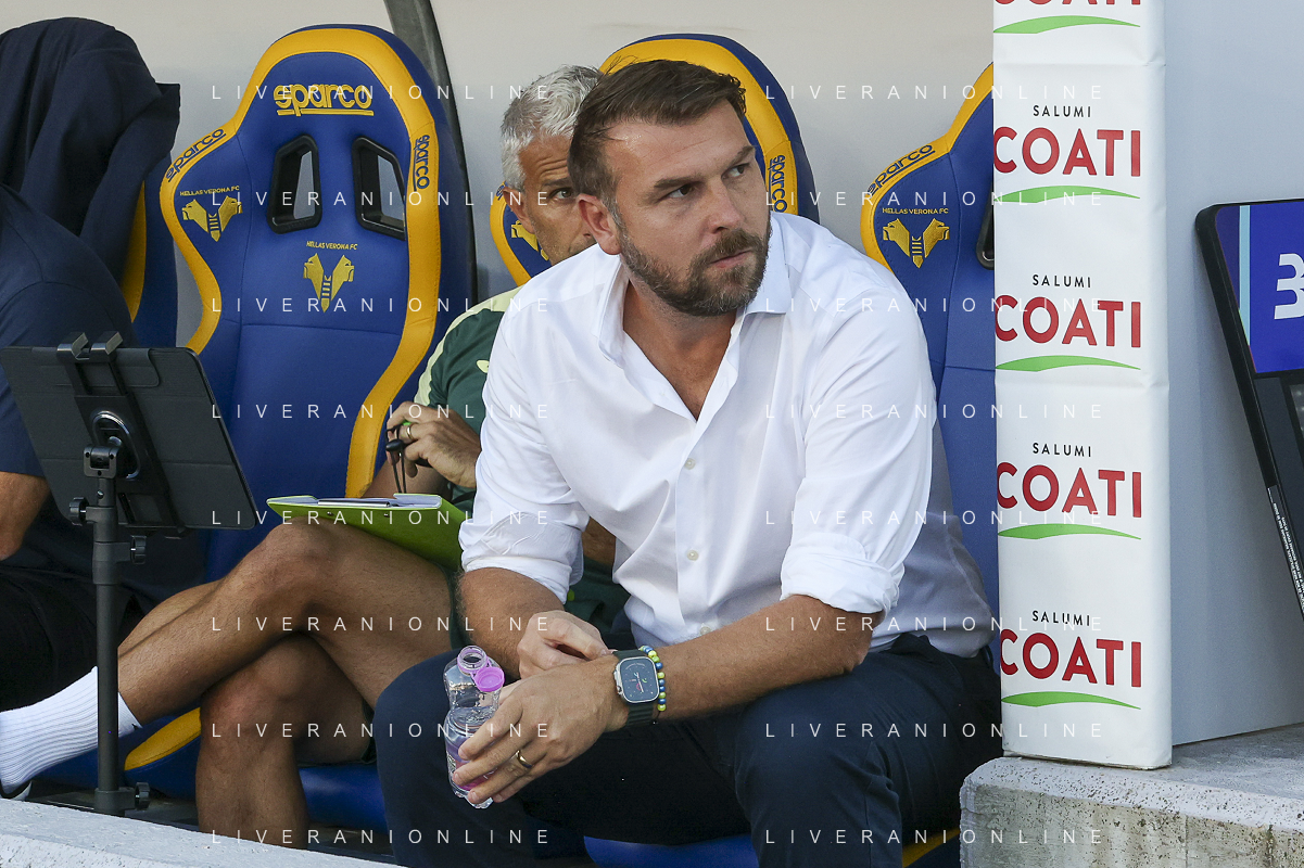 Sean Sogliano Sport Director of Hellas Verona FC during Hellas Verona FC vs Juventus FC, 4° Serie A Enilive 2025-26 game at Marcantonio Bentegodi stadium in Verona (VR), Italy, on September 20, 2025. (Photo by Davide Casentini)- AGENZIA ALDO LIVERANI