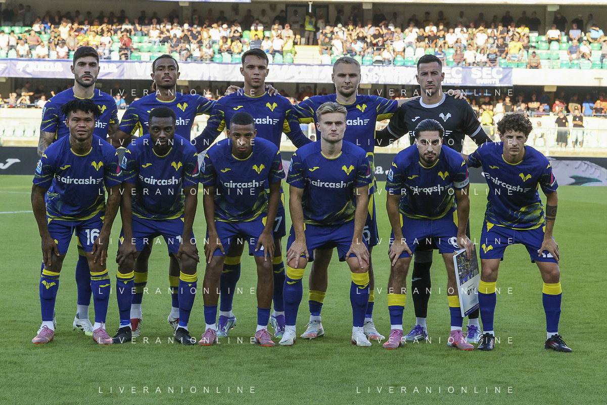 Formazione - Hellas Verona team photo during Hellas Verona FC vs Juventus FC, 4° Serie A Enilive 2025-26 game at Marcantonio Bentegodi stadium in Verona (VR), Italy, on September 20, 2025. (Photo by Davide Casentini)- AGENZIA ALDO LIVERANI