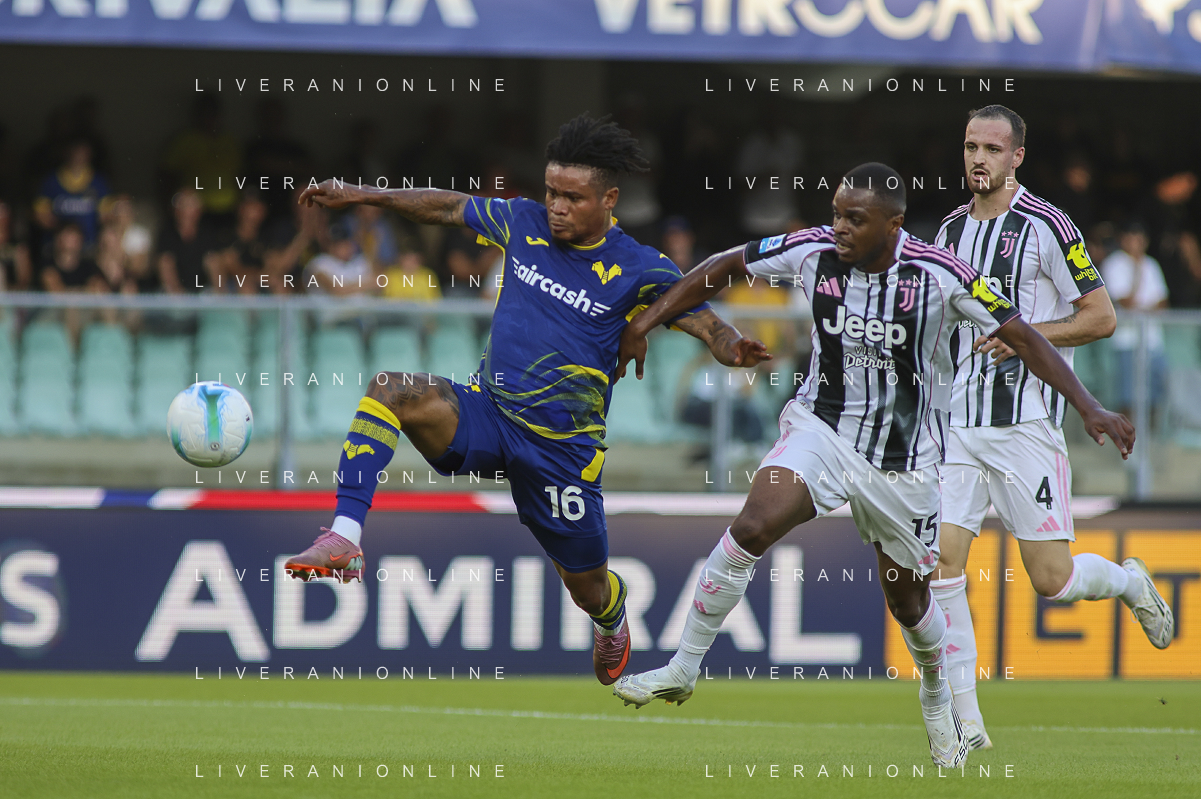 Gift Orban of Hellas Verona FC play the ball during Hellas Verona FC vs Juventus FC, 4° Serie A Enilive 2025-26 game at Marcantonio Bentegodi stadium in Verona (VR), Italy, on September 20, 2025. (Photo by Davide Casentini)- AGENZIA ALDO LIVERANI