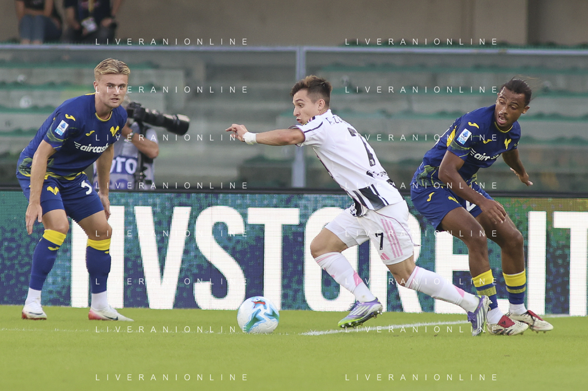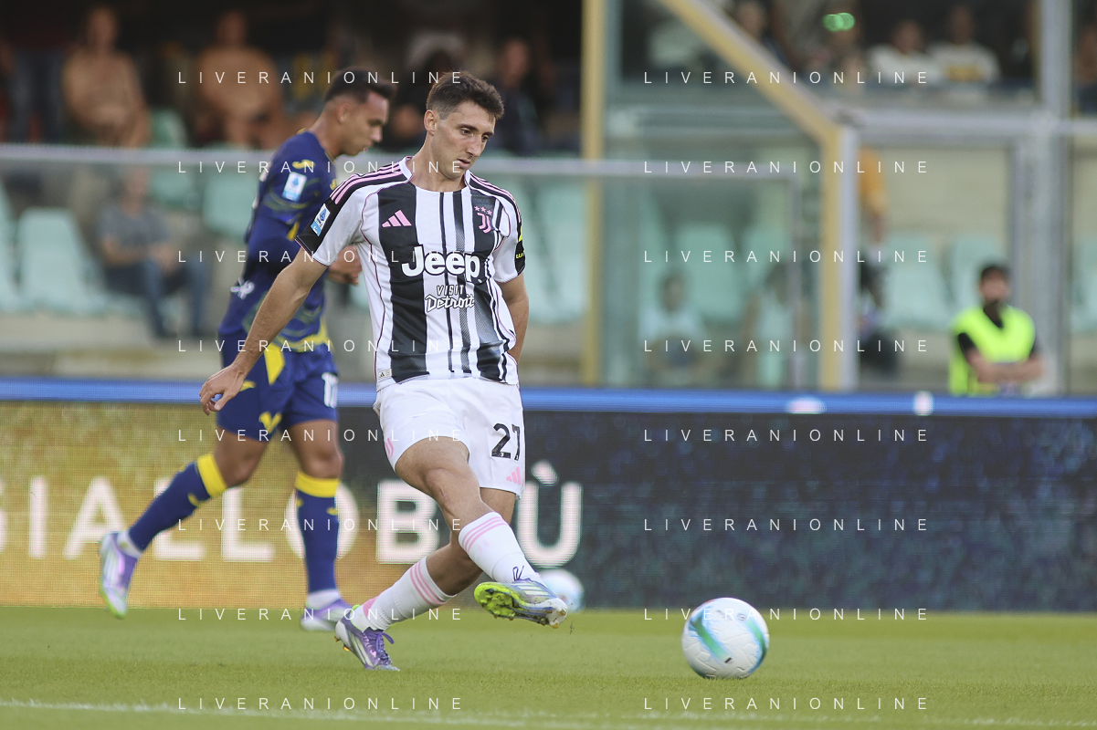 Fabio Miretti of Juventus FC play the ball during Hellas Verona FC vs Juventus FC, 4° Serie A Enilive 2025-26 game at Marcantonio Bentegodi stadium in Verona (VR), Italy, on September 20, 2025. (Photo by Davide Casentini)- AGENZIA ALDO LIVERANI