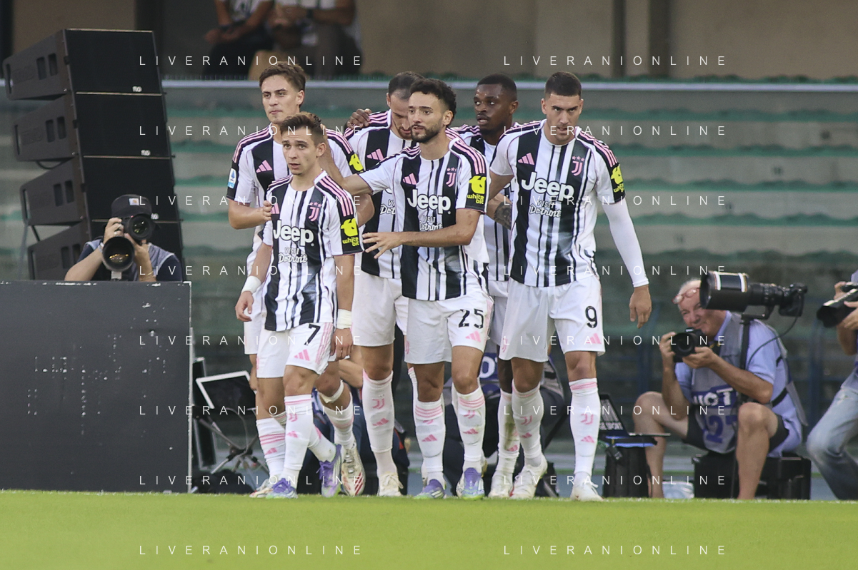 Francisco Conceicao of Juventus FC scores a goal during Hellas Verona FC vs Juventus FC, 4° Serie A Enilive 2025-26 game at Marcantonio Bentegodi stadium in Verona (VR), Italy, on September 20, 2025. (Photo by Davide Casentini)- AGENZIA ALDO LIVERANI