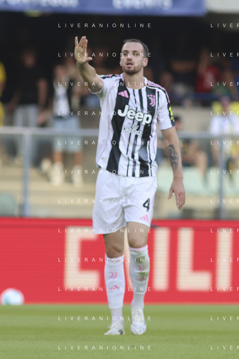 Federico Gatti of Juventus FC gestures during Hellas Verona FC vs Juventus FC, 4° Serie A Enilive 2025-26 game at Marcantonio Bentegodi stadium in Verona (VR), Italy, on September 20, 2025. (Photo by Davide Casentini)- AGENZIA ALDO LIVERANI