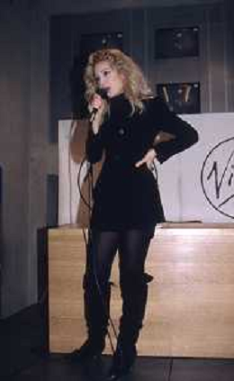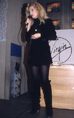 DIAP-RETROSPETTIVA IVANA SPAGNA CANTANTE NELLA FOTO IVANA SPAGNA NEL'ANNO 1995 AL NEGOZIO VIRGIN STORE A MILANO AG ALDO LIVERANI SAS