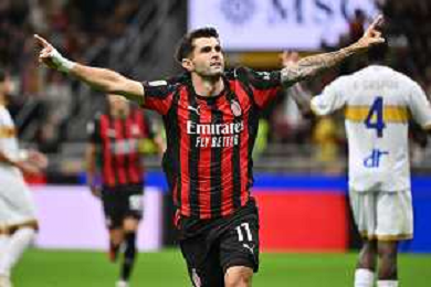Milan vs Lecce nella foto Christian Mate Pulisic (Milan) esultanza dopo il gol del 3 a 0 Milano 23-09-2025 Stadio Giuseppe Meazza - San Siro Milan vs Lecce Coppa Italia Frecciarossa - sedicesimi di finale foto Roberto Garavaglia/Agenzia Aldo Liverani sas