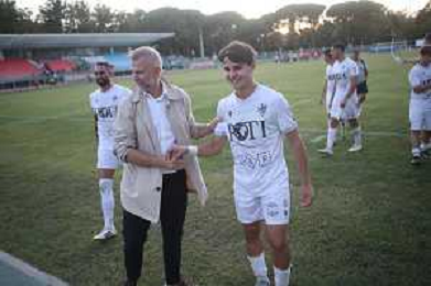 IMOLA 25 09 2025 IMOLESE CALCIO-PRO PALAZZOLO SERIE D 2-1 NELLA FOTO SANDRO DI BENEDETTO PRESIDENTE DELL'IMOLESE CALCIO CON GABRIELE MANZONI IMOLESE CALCIO AUTORE DEL PRIMO GOL ©SANNA - AGENZIA ALDO LIVERANI SAS