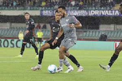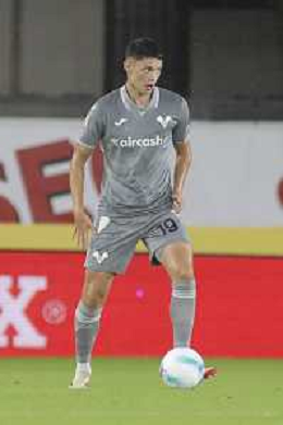 Jesus Santiago Perez "Yellu" of Hellas Verona FC play the ball during Hellas Verona FC vs Venezia FC, 16° leg of Coppa Italia Frecciarossa 2025-26 game at Marcantonio Bentegodi stadium in Verona (VR), Italy, on September 24, 2025. (Photo by Davide Casentini)- AGENZIA ALDO LIVERANI SAS
