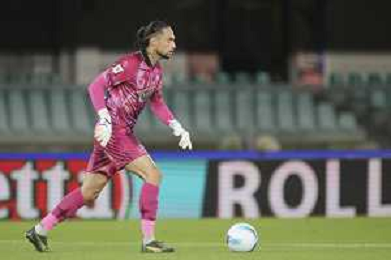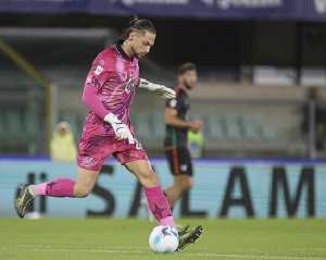 Alessandro Plizzari of Venezia FC play the ball during Hellas Verona FC vs Venezia FC, 16° leg of Coppa Italia Frecciarossa 2025-26 game at Marcantonio Bentegodi stadium in Verona (VR), Italy, on September 24, 2025. (Photo by Davide Casentini)- AGENZIA ALDO LIVERANI SAS