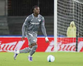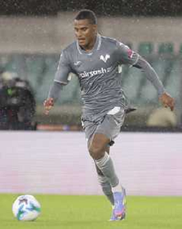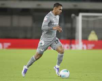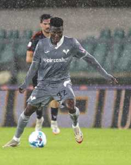 Junior Ajayi of Hellas Verona FC play the ball during Hellas Verona FC vs Venezia FC, 16° leg of Coppa Italia Frecciarossa 2025-26 game at Marcantonio Bentegodi stadium in Verona (VR), Italy, on September 24, 2025. (Photo by Davide Casentini)- AGENZIA ALDO LIVERANI SAS