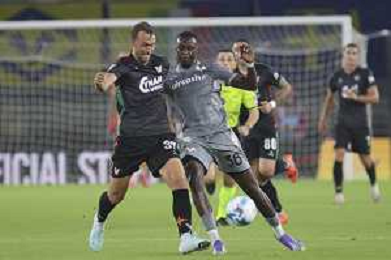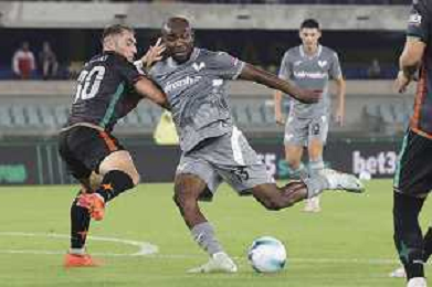 Ahmed Sidibe’ of Venezia FC play the ball during Hellas Verona FC vs Venezia FC, 16° leg of Coppa Italia Frecciarossa 2025-26 game at Marcantonio Bentegodi stadium in Verona (VR), Italy, on September 24, 2025. (Photo by Davide Casentini)- AGENZIA ALDO LIVERANI SAS