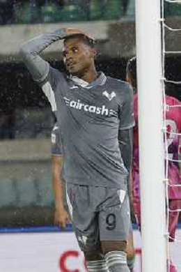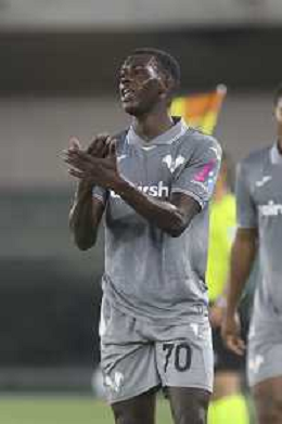 Fallou Cham of Hellas Verona FC gestures during Hellas Verona FC vs Venezia FC, 16° leg of Coppa Italia Frecciarossa 2025-26 game at Marcantonio Bentegodi stadium in Verona (VR), Italy, on September 24, 2025. (Photo by Davide Casentini)- AGENZIA ALDO LIVERANI SAS
