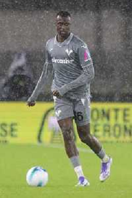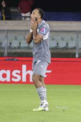 Amin Sarr of Hellas Verona FC gestures during Hellas Verona FC vs Venezia FC, 16° leg of Coppa Italia Frecciarossa 2025-26 game at Marcantonio Bentegodi stadium in Verona (VR), Italy, on September 24, 2025. (Photo by Davide Casentini)- AGENZIA ALDO LIVERANI SAS