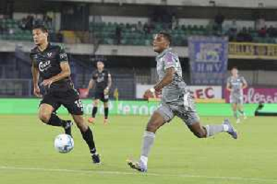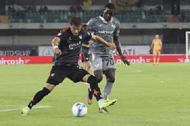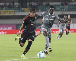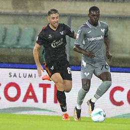 Fallou Cham of Hellas Verona FC play the ball during Hellas Verona FC vs Venezia FC, 16° leg of Coppa Italia Frecciarossa 2025-26 game at Marcantonio Bentegodi stadium in Verona (VR), Italy, on September 24, 2025. (Photo by Davide Casentini)- AGENZIA ALDO LIVERANI SAS