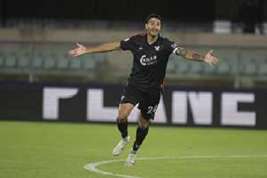 Nunzio Lella of Venezia FC celebrates after scoring the penalty of victory during Hellas Verona FC vs Venezia FC, 16° leg of Coppa Italia Frecciarossa 2025-26 game at Marcantonio Bentegodi stadium in Verona (VR), Italy, on September 24, 2025. (Photo by Davide Casentini)- AGENZIA ALDO LIVERANI SAS