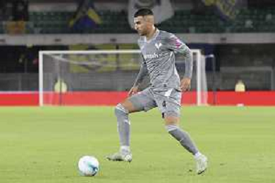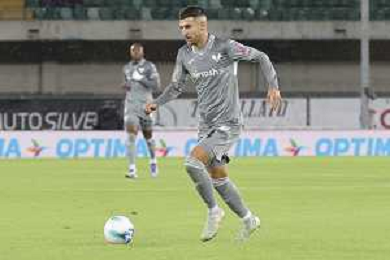 Grigoris Kastanos of Hellas Verona FC play the ball during Hellas Verona FC vs Venezia FC, 16° leg of Coppa Italia Frecciarossa 2025-26 game at Marcantonio Bentegodi stadium in Verona (VR), Italy, on September 24, 2025. (Photo by Davide Casentini)- AGENZIA ALDO LIVERANI SAS