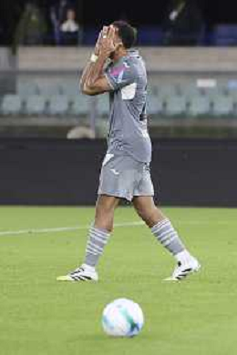 Enzo Ebosse of Hellas Verona expresses disappointment after wrong penalty during Hellas Verona FC vs Venezia FC, 16° leg of Coppa Italia Frecciarossa 2025-26 game at Marcantonio Bentegodi stadium in Verona (VR), Italy, on September 24, 2025. (Photo by Davide Casentini)- AGENZIA ALDO LIVERANI SAS