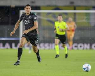 Joel Schingtienne of Venezia FC play the ball during Hellas Verona FC vs Venezia FC, 16° leg of Coppa Italia Frecciarossa 2025-26 game at Marcantonio Bentegodi stadium in Verona (VR), Italy, on September 24, 2025. (Photo by Davide Casentini)- AGENZIA ALDO LIVERANI SAS