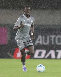 Fallou Cham of Hellas Verona FC play the ball during Hellas Verona FC vs Venezia FC, 16° leg of Coppa Italia Frecciarossa 2025-26 game at Marcantonio Bentegodi stadium in Verona (VR), Italy, on September 24, 2025. (Photo by Davide Casentini)- AGENZIA ALDO LIVERANI SAS