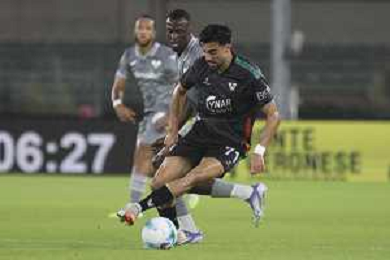 Moatasem Al-Musrati of Hellas Verona FC play the ball during Hellas Verona FC vs Venezia FC, 16° leg of Coppa Italia Frecciarossa 2025-26 game at Marcantonio Bentegodi stadium in Verona (VR), Italy, on September 24, 2025. (Photo by Davide Casentini)- AGENZIA ALDO LIVERANI SAS