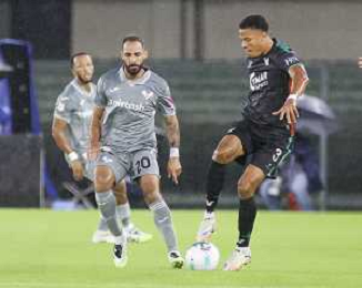 Joel Schingtienne of Venezia FC during Hellas Verona FC vs Venezia FC, 16° leg of Coppa Italia Frecciarossa 2025-26 game at Marcantonio Bentegodi stadium in Verona (VR), Italy, on September 24, 2025. (Photo by Davide Casentini)- AGENZIA ALDO LIVERANI SAS