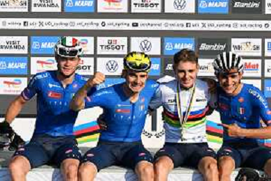 26-09-2025 World Championships U23; 2025, Italia; Finn, Lorenzo Mark; Borgo, Alessandro; Gualdi, Simone; Mattio, Pietro; Kigali; ©SIROTTI - AGENZIA ALDO LIVERANI SAS
