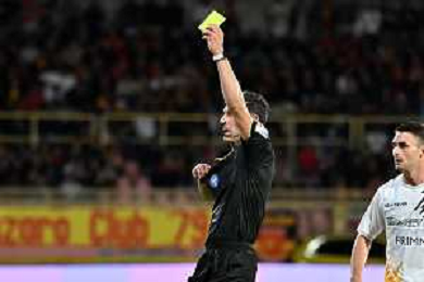 Serie B Bkt 2025-2026 Catanzaro vs Juve Stabia Stadio Nicola Ceravolo Nella foto: arbitro Juan Manuel Sacchi con cartellino giallo ammonizione Foto Andrea Rosito @Agenzia Liverani SAS - AGENZIA ALDO LIVERANI SAS