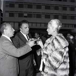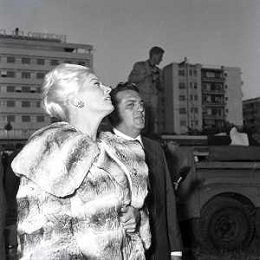 NEG-Federico Fellini regista, sceneggiatore, scrittore e fumettista italiano - Retrospettiva nella foto Cocktail all'aperto in una zona di periferia davanti all'Hotel dei Congressi per il film ' Boccaccio '70 ' a Roma nel 1962 con Anita Ekberg FOTO SANDRO VESPASIANI/ AGENZIA ALDO LIVERANI SAS