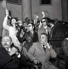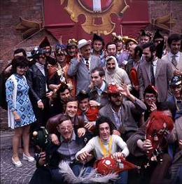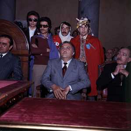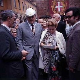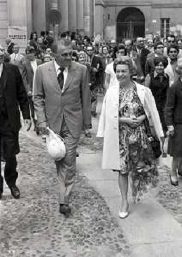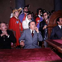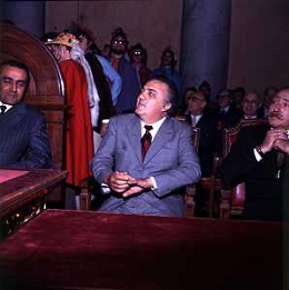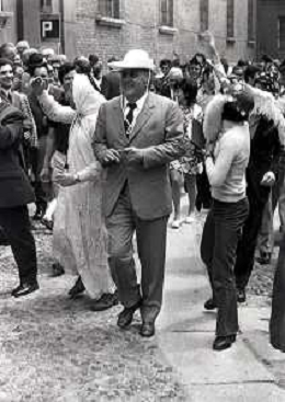 NEG-RETROSPETTIVA FEDERICO FELLINI REGISTA NELLA FOTO FEDERICO FELLINI CON GIULIETTA MASINA MATRICOLA D'ONORE AL'UNIVERSITA' DI PAVIA NELL'ANNO 1971 AG ALDO LIVERANI SAS