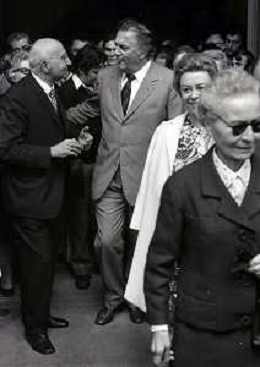 COL-RETROSPETTIVA FEDERICO FELLINI REGISTA NELLA FOTO FEDERICO FELLINI CON GIULIETTA MASINA MATRICOLA D'ONORE AL'UNIVERSITA' DI PAVIA NELL'ANNO 1971 AG ALDO LIVERANI SAS