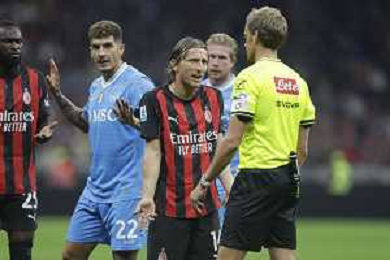 LUKA MODRIC CON L’ARBITRO DANIELE CHIFFI -MILAN vs NAPOLI CAMPIONATO CALCIO SERIE A 28.09.2025 ©PAOLO GIAMPIETRI - AGENZIA ALDO LIVERANI SAS