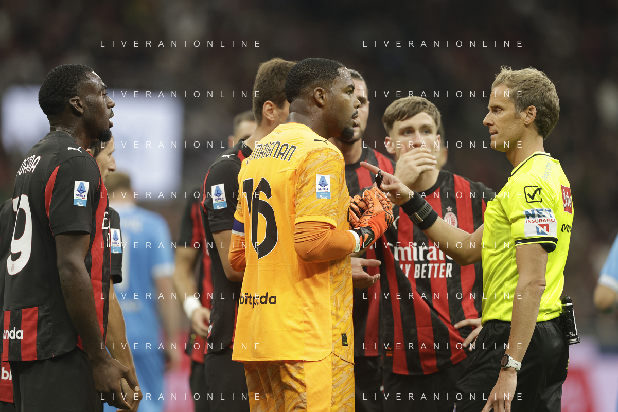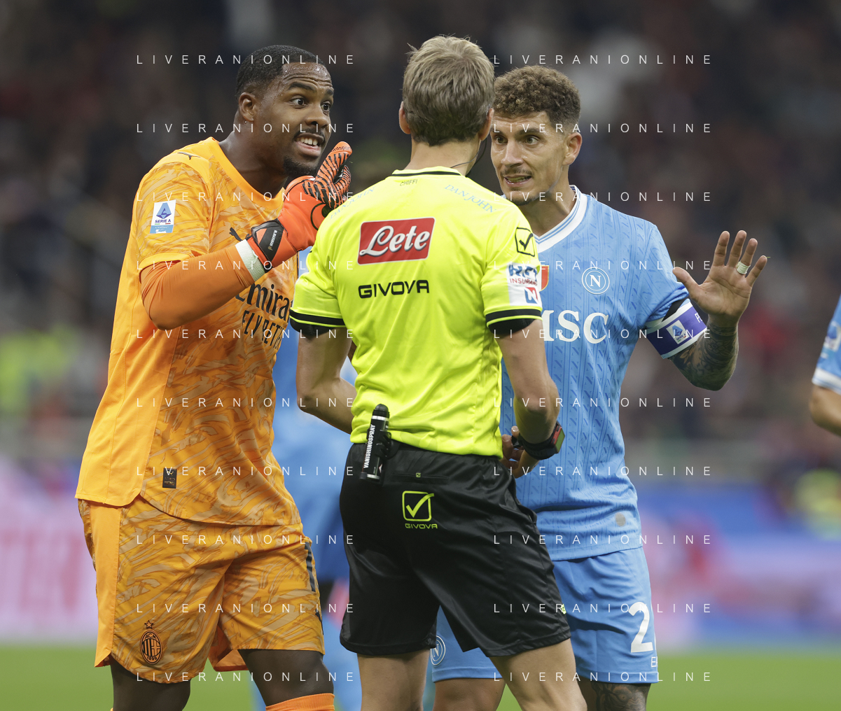 MIKE MAIGNAN E L’ARBITRO DANIELE CHIFFI -MILAN vs NAPOLI CAMPIONATO CALCIO SERIE A 28.09.2025 ©PAOLO GIAMPIETRI - AGENZIA ALDO LIVERANI SAS