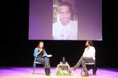IMOLA TEATRO OSSERVANZA INCONTRO PUBBLICO PER GAZA COLLEGAMENTO CON GIORNALISTA LORENZO D'AGOSTINO CHE SI TROVA SU BORDO GLOBAL SUMUD FLOTILLA CHE VA VERSO GAZA NELLA FOTO COLLEGAMENTO CON GIORNALISTA LORENZO D'AGOSTINO ©SANNA - AGENZIA ALDO LIVERANI SAS