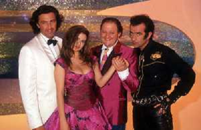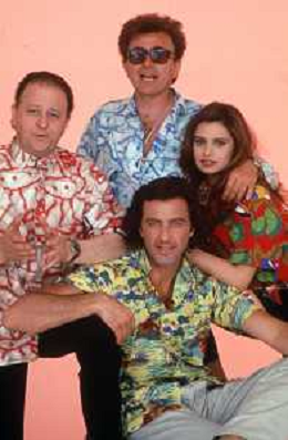 DIAP-RETROSPETTIVA DEBORA CAPRIOGLIO ATTRICE NELLA FOTO DEBORA CAPRIOGLIO NELLA TRASMISSIONE TELEVISIVA “ SAPORE DI MARE “CON LUCA BARBARESCHI-MASSIMO BOLDI E TEO TEOCOLI NELL'ANNO 1991 A MILANO AG ALDO LIVERANI SAS
