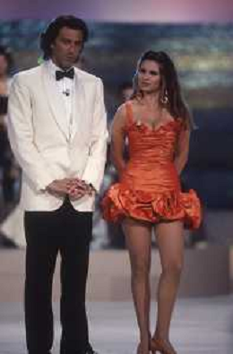 DIAP-RETROSPETTIVA DEBORA CAPRIOGLIO ATTRICE NELLA FOTO DEBORA CAPRIOGLIO NELLA TRASMISSIONE TELEVISIVA “ SAPORE DI MARE “ CON LUCA BARBARESCHI NELL'ANNO 1991 A MILANO AG ALDO LIVERANI SAS