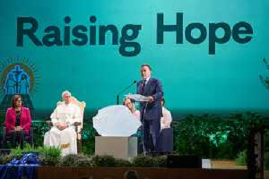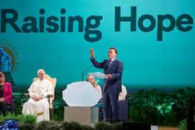 Castel Gandolfo 01 Ottobre 2025 Celebration of Hope - Raising Hope for Climate Justice Nella foto: Papa Leone XIV Foto Credit: Andrea Bracaglia- AGENZIA ALDO LIVERANI SAS