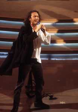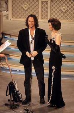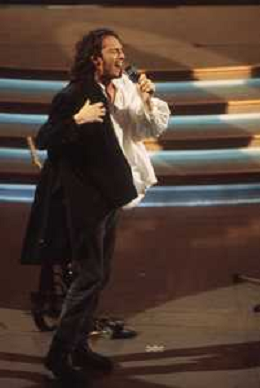 DIAP-RETROSPETTIVA BIAGIO ANTONACCI CANTANTE NELLA FOTO BIAGIO ANTONACCI A SANREMO NELL'ANNO 1992 CON PIPPO BAUDO AG ALDO LIVERANI SAS