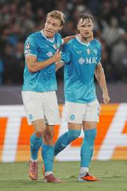TVPM Napoli, Sporting Lisbona Nella Foto: Morten Hjulmand, Frank Anguissa Foto Mosca, Ag.Liverani- AGENZIA ALDO LIVERANI SAS -TVPM Napoli - Sporting Lisbona UEFA Champions League 2a Giornata 01.10.2025