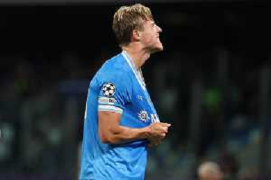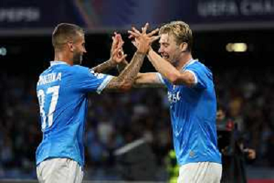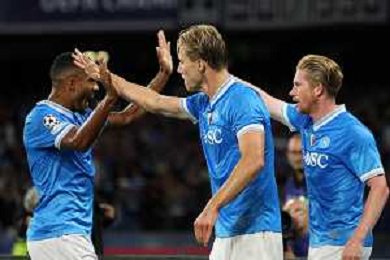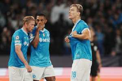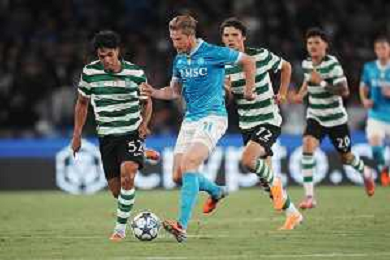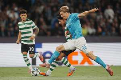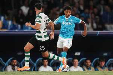 TVPM Napoli, Sporting Lisbona Nella Foto: Noa Lang Foto Mosca, Ag.Liverani- AGENZIA ALDO LIVERANI SAS -TVPM Napoli - Sporting Lisbona UEFA Champions League 2a Giornata 01.10.2025
