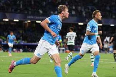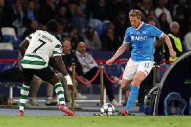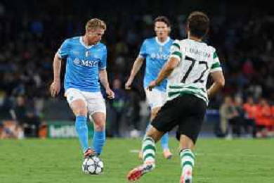 TVPM Napoli, Sporting Lisbona Nella Foto: Kevin De Bruyne Foto Mosca, Ag.Liverani- AGENZIA ALDO LIVERANI SAS -TVPM Napoli - Sporting Lisbona UEFA Champions League 2a Giornata 01.10.2025