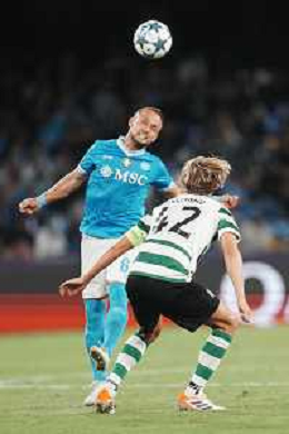 TVPM Napoli, Sporting Lisbona Nella Foto: Sam Beukema Foto Mosca, Ag.Liverani- AGENZIA ALDO LIVERANI SAS -TVPM Napoli - Sporting Lisbona UEFA Champions League 2a Giornata 01.10.2025