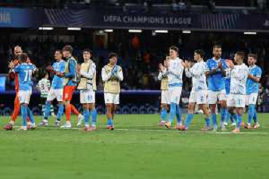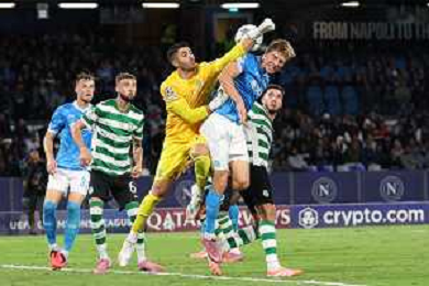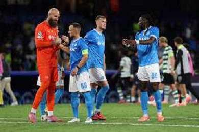 TVPM Napoli, Sporting Lisbona Nella Foto: fine gara Napoli Foto Mosca, Ag.Liverani- AGENZIA ALDO LIVERANI SAS -TVPM Napoli - Sporting Lisbona UEFA Champions League 2a Giornata 01.10.2025