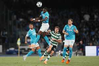 TVPM Napoli, Sporting Lisbona Nella Foto: Frank Anguissa Foto Mosca, Ag.Liverani- AGENZIA ALDO LIVERANI SAS -TVPM Napoli - Sporting Lisbona UEFA Champions League 2a Giornata 01.10.2025