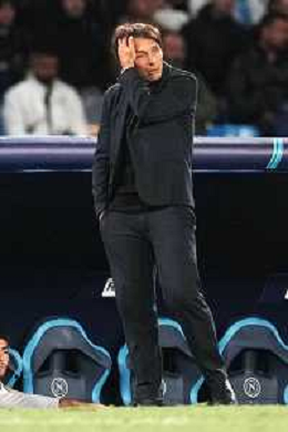 TVPM Napoli, Sporting Lisbona Nella Foto: delusione Antonio Conte Foto Mosca, Ag.Liverani- AGENZIA ALDO LIVERANI SAS -TVPM Napoli - Sporting Lisbona UEFA Champions League 2a Giornata 01.10.2025