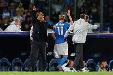 TVPM Napoli, Sporting Lisbona Nella Foto: Antonio Conte. Kevin De Bruyne Foto Mosca, Ag.Liverani- AGENZIA ALDO LIVERANI SAS -TVPM Napoli - Sporting Lisbona UEFA Champions League 2a Giornata 01.10.2025