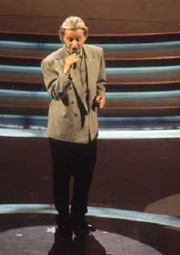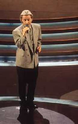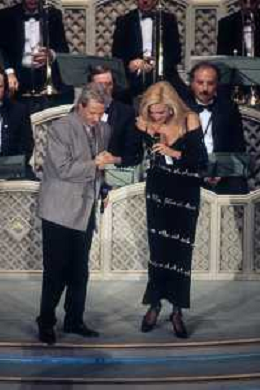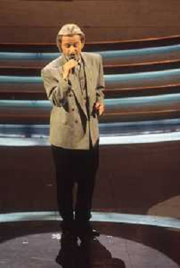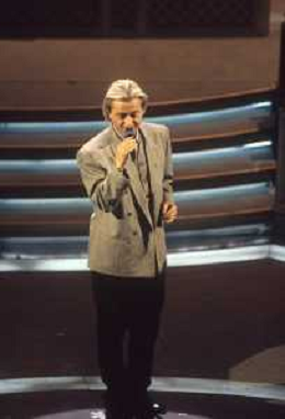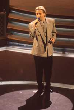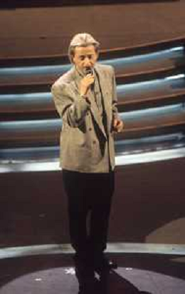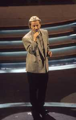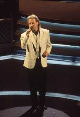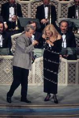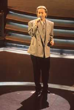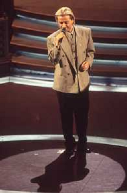 DIAP-RETROSPETTIVA AMEDEO MINGHI CANTANTE NELLA FOTO AMEDEO MINGHI A SANREMO NELL'ANNO 1992 CON MARA VENIER AG ALDO LIVERANI SAS