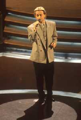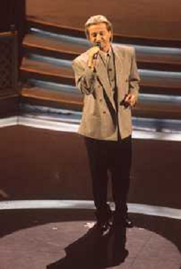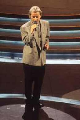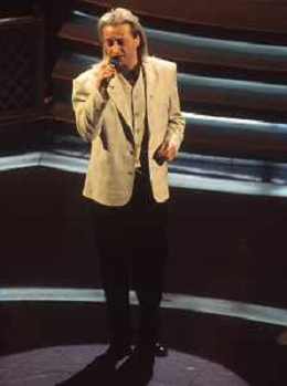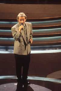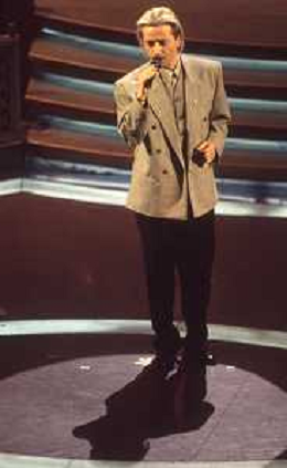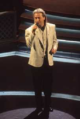 DIAP-RETROSPETTIVA AMEDEO MINGHI CANTANTE NELLA FOTO AMEDEO MINGHI A SANREMO NELL'ANNO 1992 CON PIPPO BAUDO AG ALDO LIVERANI SAS